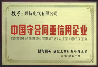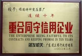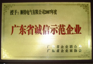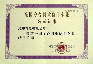 順特電氣被廣東省工商行政管理局評為“廣東省連續(xù)十年重合同守信用企業(yè)”。