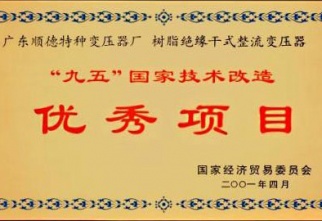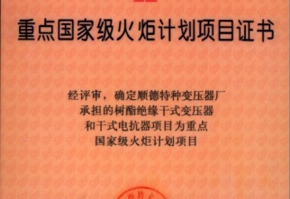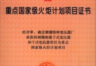 干式變壓器、干式電抗器項目獲得國家科委“國家火炬計劃項目”。