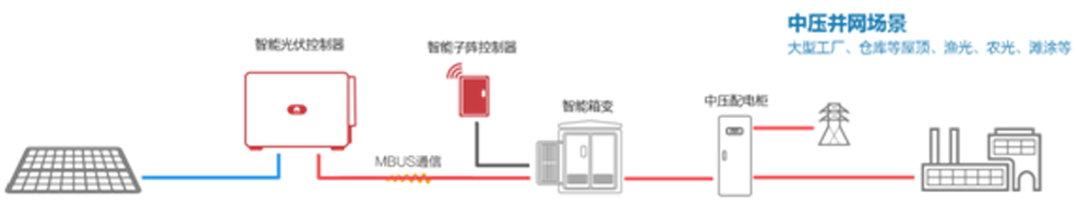 并網(wǎng)光伏發(fā)電系統(tǒng)是指太陽能電池利用太陽輻射能量產(chǎn)生的直流電(即太陽電池的“光生伏特效應(yīng)”)通過并網(wǎng)光伏逆變器轉(zhuǎn)換成交流電向電網(wǎng)輸送的系統(tǒng),其本質(zhì)是利用太陽能進(jìn)行發(fā)電的發(fā)電站。與煤、石油和天然氣等傳統(tǒng)能源進(jìn)行發(fā)電的發(fā)電站系統(tǒng)相比,并網(wǎng)光伏發(fā)電系統(tǒng)具有可再生、無污染等優(yōu)點(diǎn)。該光伏項(xiàng)目采用10kV等級(jí)高壓并網(wǎng)方式,光伏系統(tǒng)包含一套順特電氣自主制造的10kV等級(jí)4000kVA預(yù)裝式光伏升壓站、7160塊光伏組件、13組300kW大功率智能組串式光伏逆變器、一套10kV智能并網(wǎng)開關(guān)柜等組成,光伏組件通過光生伏特效應(yīng)產(chǎn)生電流,然后通過組串式逆變器進(jìn)行逆變,將直流電轉(zhuǎn)換為交流電,最后就地升壓至10kV接入電網(wǎng)。